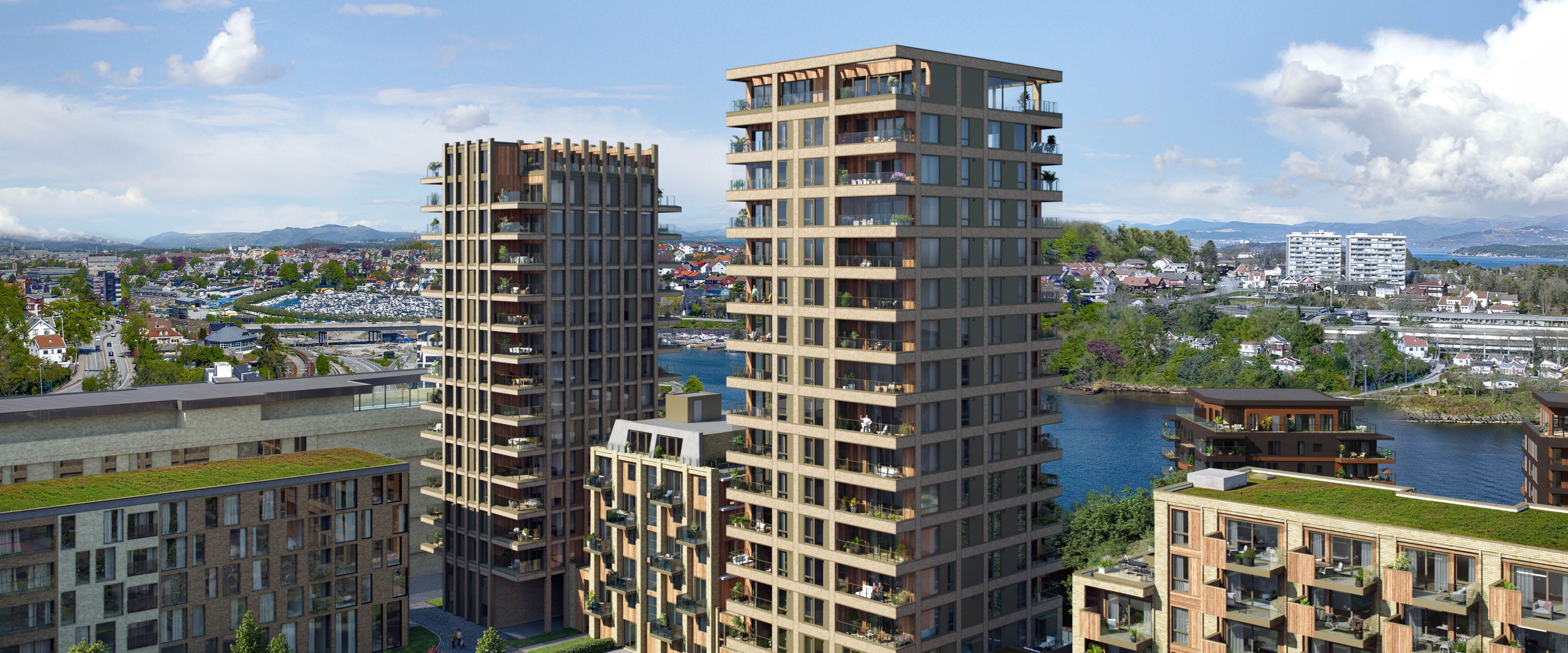 Med sine 60 meter over bakken åpner Sytten for storslått panoramautsikt mot enten fjorden, Ryfylke, byen eller horisonten – avhengig av hvilken leilighet du velger. Med fjorden på den ene siden og parken på den andre får boligene rikelig med lys fra to kanter, og en utsikt som både gir oversikt, ro og et naturlig sted å la blikket hvile.